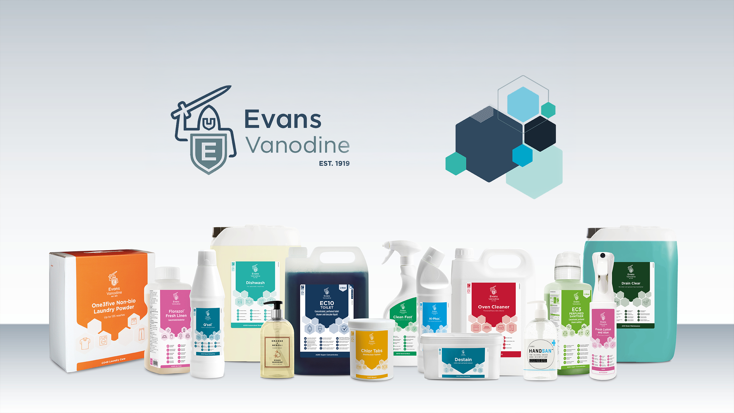 Today, Evans products cover an extensive range of applications for the industrial, professional hygiene and food process sectors. With a focus on HORECA and healthcare, keeping restaurants, hotels and hospitals hygienic and safe, providing surface disinfectants, heavy-duty cleaners, warewashing and laundry products, including a comprehensive range of hand hygiene and skin care products.