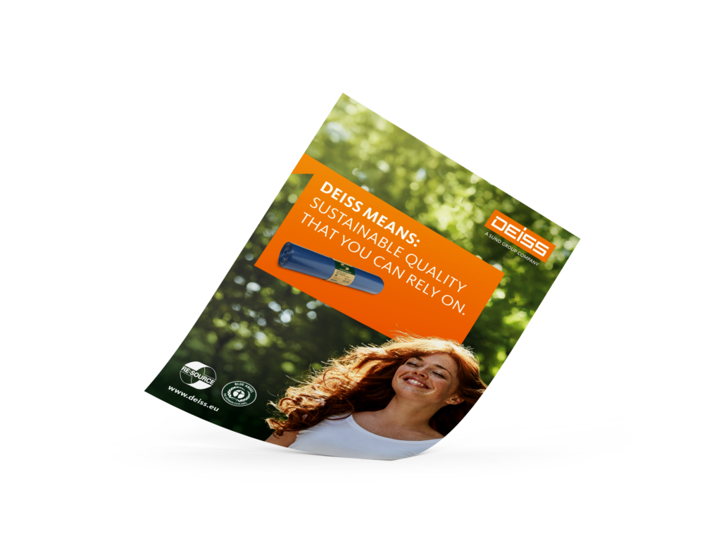 DEISS stands for innovation, sustainability and quality for professionals. As a modern family-run company based in Hamburg, we are the market leader for bin liners and garbage bags for professional use. We are constantly researching sustainable solutions for tomorrow. In 2025, we were awarded the EcoVadis Platinum Medal for our commitment. High-quality recycled materials are at the heart of our sustainability efforts, with a strong focus on increasing the share of post-consumer recycled (PCR) material.
