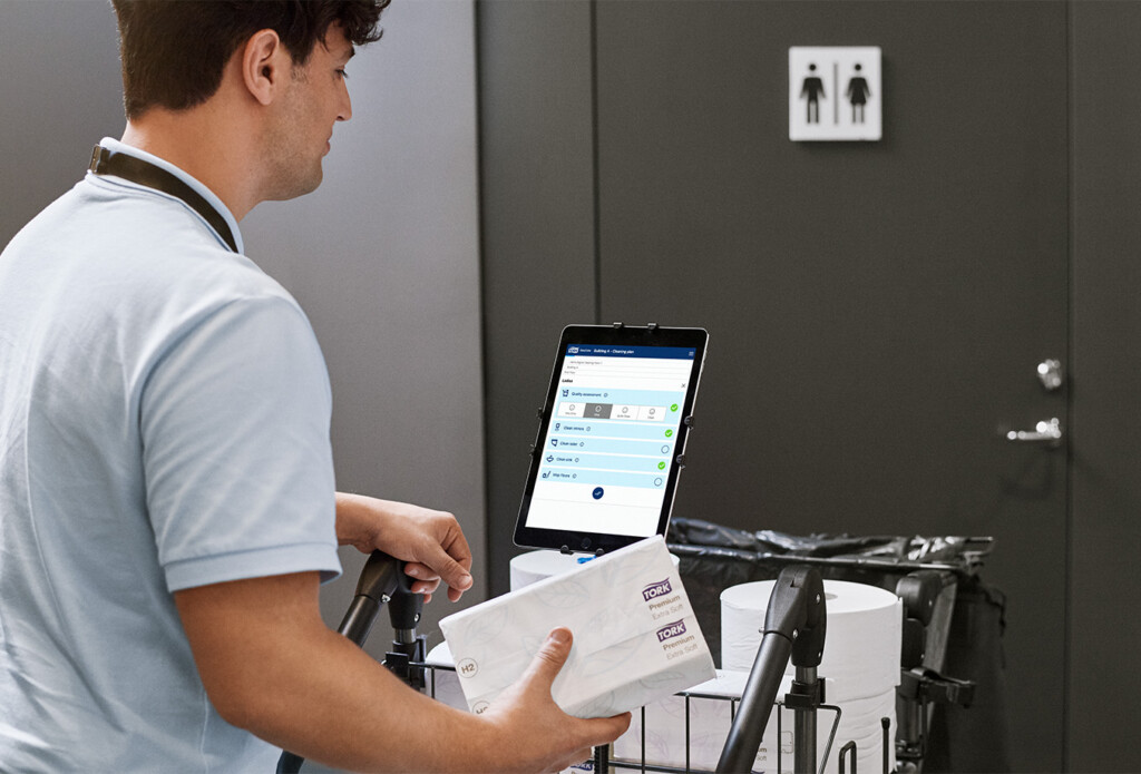 Innovation is at the heart of the Tork brand. By combining deep industry insights with advanced technologies, Tork continuously develops solutions that transform hygiene management. Solutions such as Tork Vision Cleaning empower cleaning teams with realtime data to work more efficiently and improve service quality. Highcapacity hand towel systems like Tork PeakServe®, one at a time toilet paper dispensing with Tork SmartOne®, help streamline operations, enhance user experience and support sustainability targets by reducing consumption and waste.